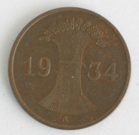 1 Reichspfennig 1934 A aus Bronze Weimarer Republik