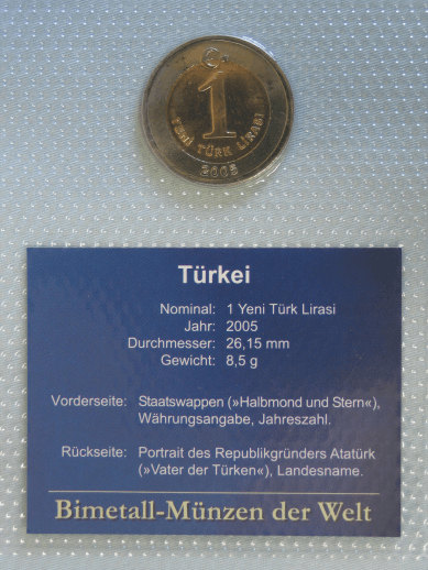 1 Yeni Türk Lirasi aus der Türkei 2005 im Blister