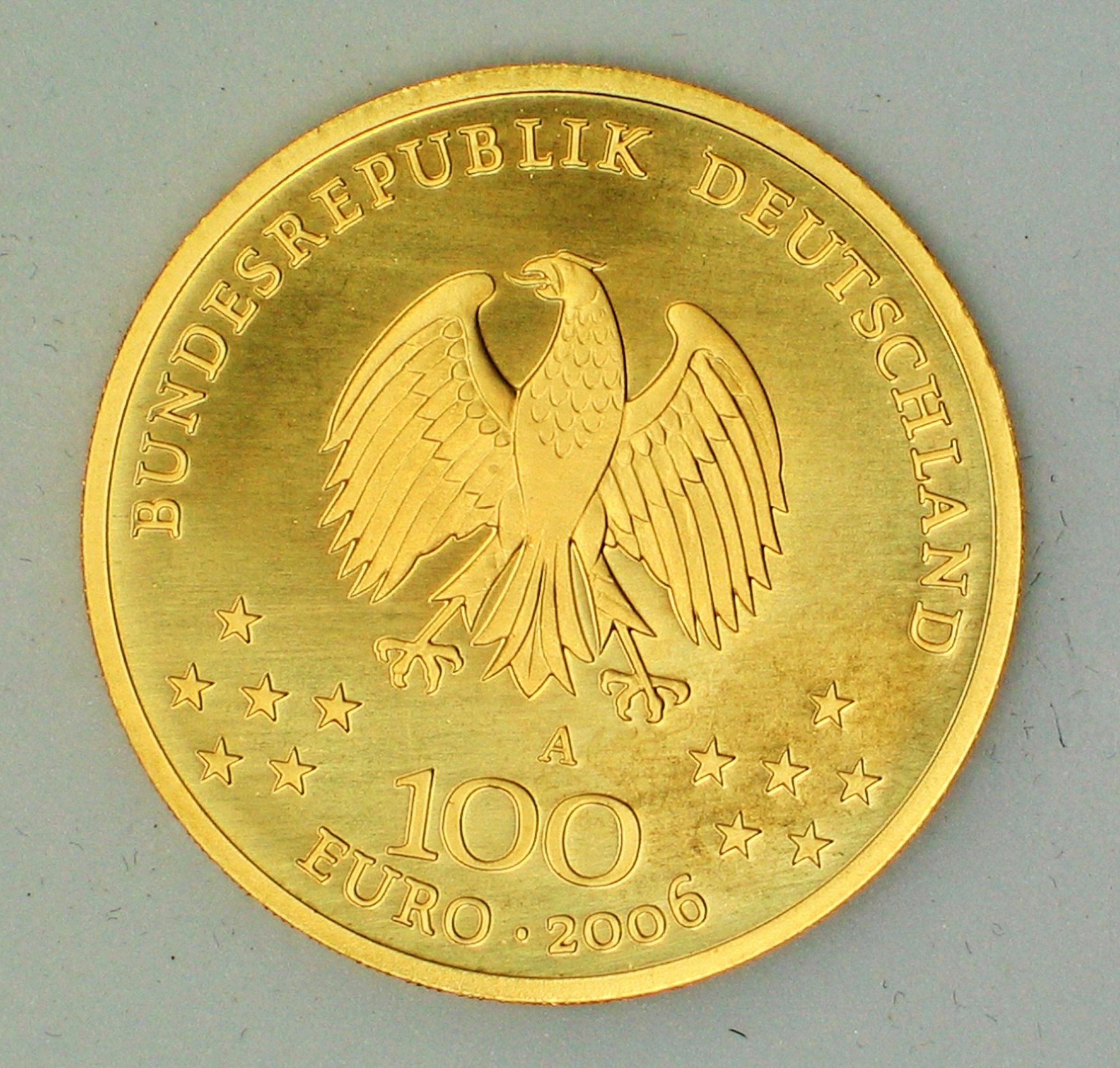 Seit Einführung des Euros im Jahr 2002 wird jährlich eine Goldmünze mit einem Nennwert von 100 € geprägt. Alle deutschen 100 Euro Goldmünzen haben ein Gewicht von 15,55 g (1/2 Unze), einen Durchmesser von 28 mm, einen geriffelten Rand und bestehen aus 999,9 Feingold. Sie werden ausschließlich in der Prägequalität Stempelglanz hergestellt. Diese Münzen sind in Deutschland gesetzliches Zahlungsmittel; im Umlauf befinden sie sich jedoch nicht, da ihr Metallwert deutlich über dem Nennwert liegt.