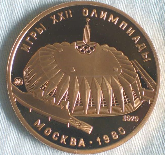 100 Rubel "Olympiade Moskau" 1980 "Turnhalle" in Box und Kapsel, 900er Gold 1/2 oz Feingold