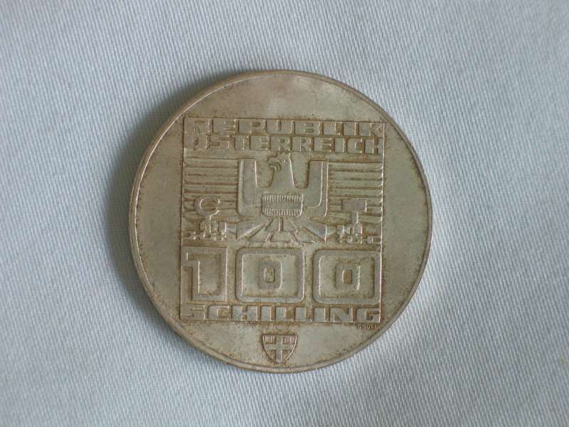 100 Schilling Österreich "XII Olympische Winterspiele", 640er Silbermünze Top