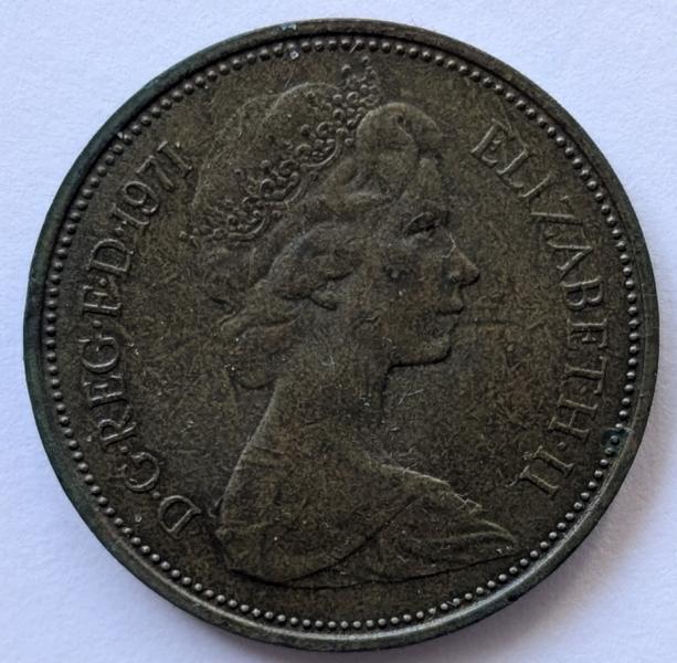 2 New Pence 1971, Königin Elizabeth II., England