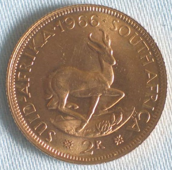 In den Jahren 1961 bis 1983 wurden in Südafrika Rand Goldmünzen der Nennwerte 1 Rand und 2 Rand geprägt. Größe, Gewicht und Feingehalt entsprechen exakt dem englischen Sovereign (1 und 1/2 Pfund Münzen).