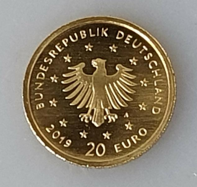 20 Euro Gold 2019 D Heimische Vögel "Wanderfalke" mit original Münzetui und Beschreibung, 1/8 oz Feingold 999,9