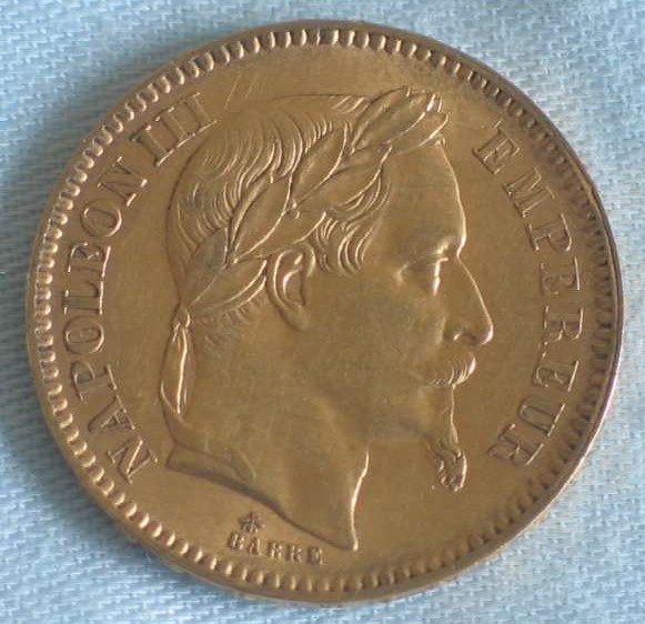 20 Francs "Napoleon III" 1864 "A" Frankreich 900er Gold
