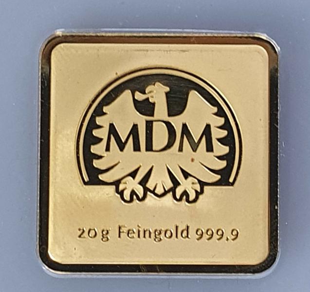 20 Gramm MDM Goldbarren 999,9 Feingold in OVP