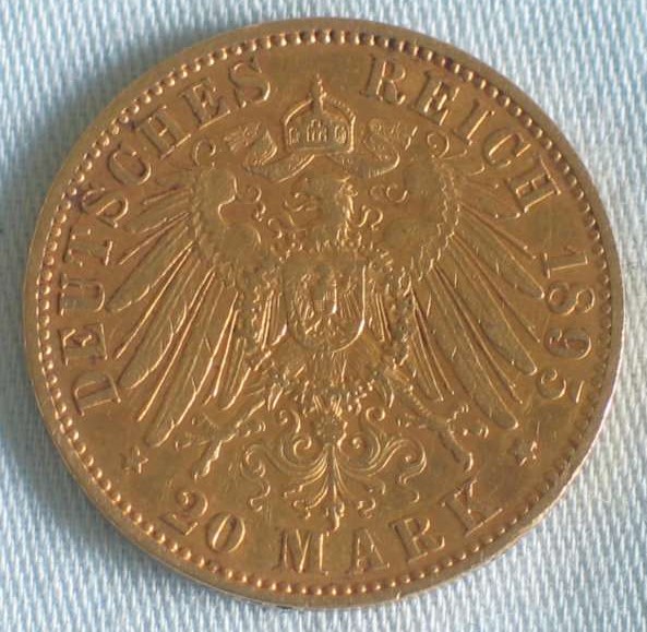 Die 20 Mark Reichsgoldmünzen wurden ab 1871 geprägt. Zunächst war als Wertangabe 20 M angegeben. Ab 1874 prägte man die Bezeichnung „Mark“ auf die Münze, damit sich die Bevölkerung an diese Bezeichnung gewöhnt. Ab 1890 erhielt Mnze einen deutlich vergrößerten Reichsadler.