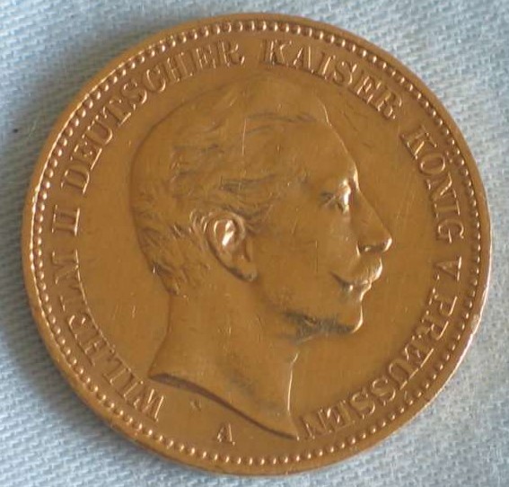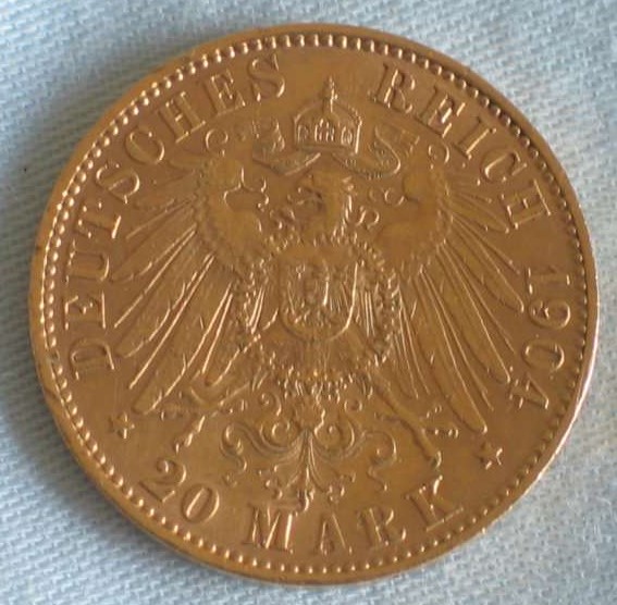 Neben der 20 Mark Goldmünze gibt es auch noch die 10 und die 5 Reichsmark als Goldmünzen.