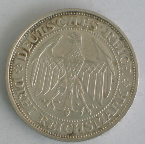 Vorderseite: Drei Mark Deutsches Reich 1931