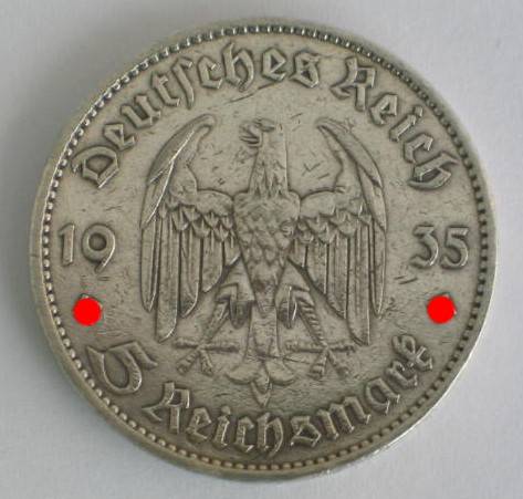 5 Reichsmark Drittes Reich "Garnisonskirche" 1935 A aus 900er Silber