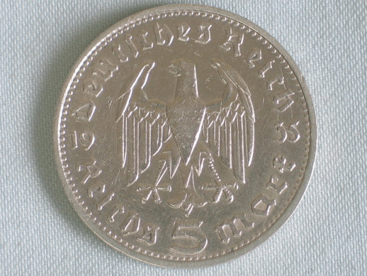 5 Reichsmark Drittes Reich "Hindenburg" 1935 D aus 900er Silber