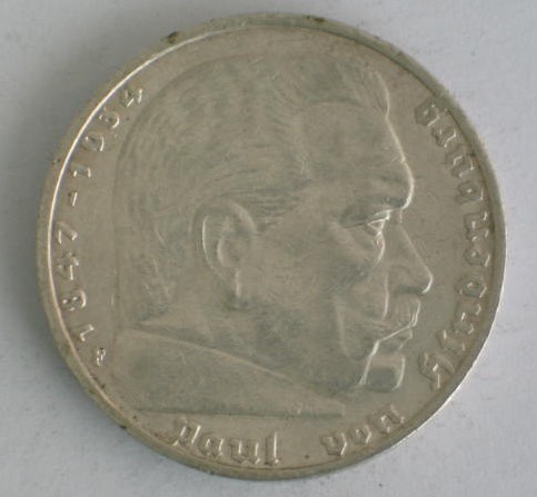 5 Reichsmark Drittes Reich "Hindenburg" 1935 F aus 900er Silber