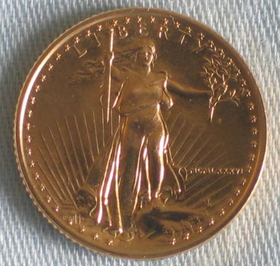 Preview: 5$ US "American Eagle - Liberty Walking" 1986 USA 1/10 oz 916,7er Gold, Römische Jahreszahlen