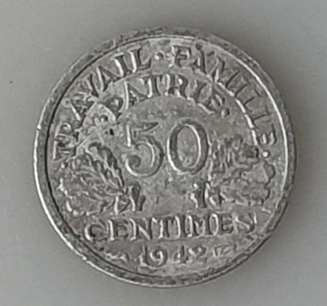 Mobile Preview: 50 Centimes 1942 B, Vichy, Frankreich
