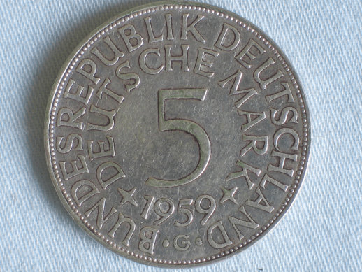 5 DM Silberadler aus 625er Silber 1959 G
