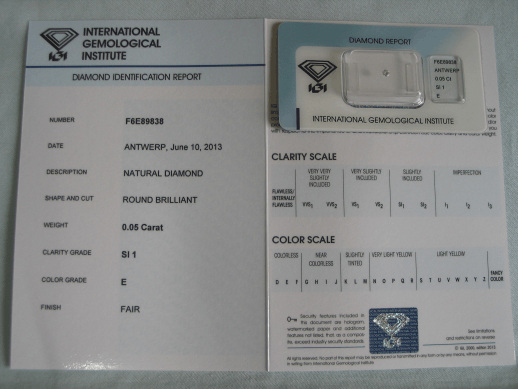 Diamant im Brillantschliff 0.05 ct / SI1 / E / Fair / mit IGI Report