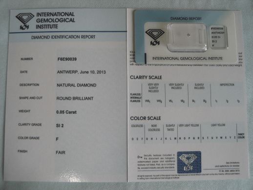 Diamant im Brillantschliff 0.05 ct / SI2 / F / Fair / mit IGI Report