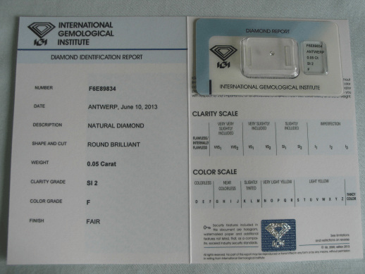 Diamant im Brillantschliff 0.05 ct / SI2 / F / Fair / mit IGI Report