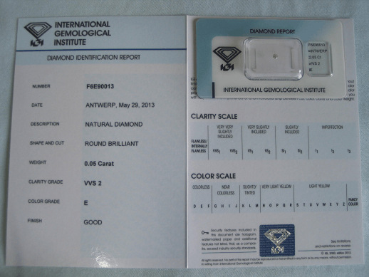 Diamant im Brillantschliff 0.05 ct / VVS2 / E / Good / mit IGI Report