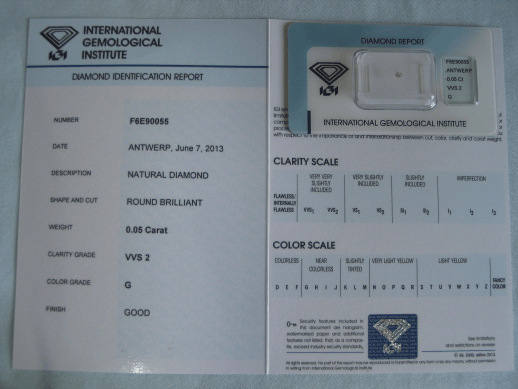 Diamant im Brillantschliff 0.05 ct / VVS2 / G / Good / mit IGI Report