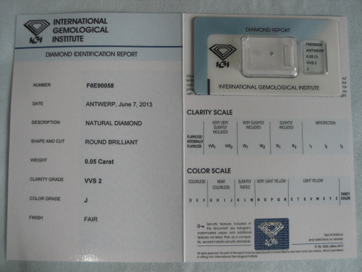 Diamant im Brillantschliff 0.05 ct / VVS2 / J / Fair / mit IGI Report