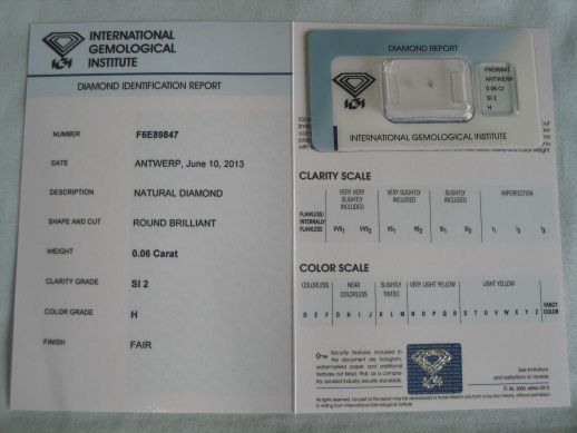Diamant im Brillantschliff 0.06 ct / SI2 / H / Fair / mit IGI Report