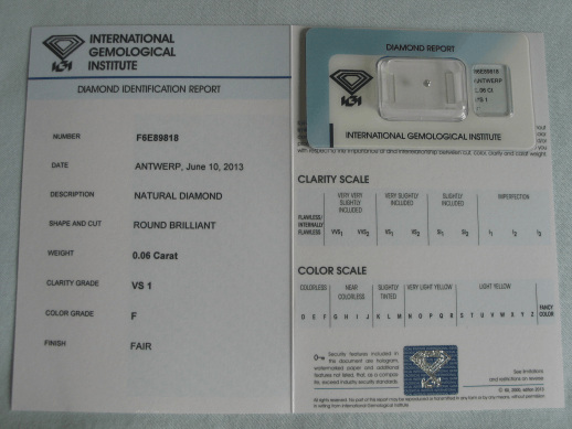 Diamant im Brillantschliff 0.06 ct / VS1 / F / Fair / mit IGI Report