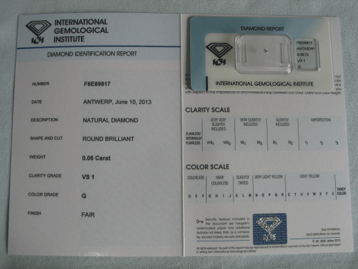 Diamant im Brillantschliff 0.06 ct / VS1 / G / Fair / mit IGI Report