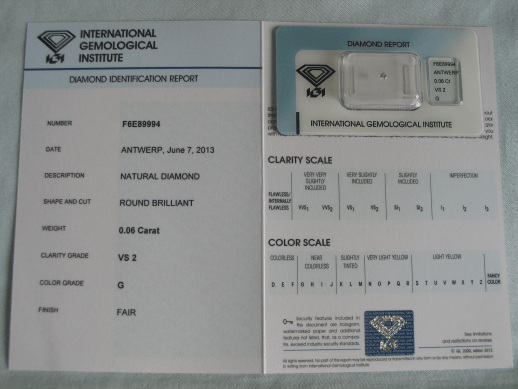 Diamant im Brillantschliff 0.06 ct / VS2 / G / Fair / mit IGI Report