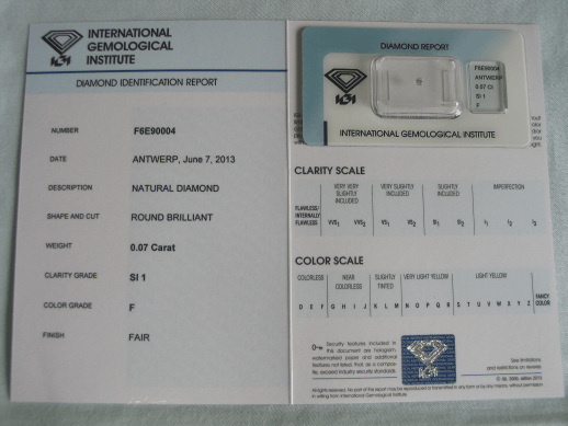 Diamant im Brillantschliff 0.07 ct / SI1 / F / Fair / mit IGI Report