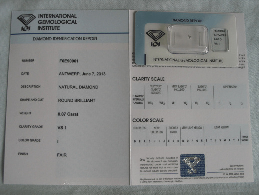 Diamant im Brillantschliff 0.07 ct / VS1 / I / Fair / mit IGI Report