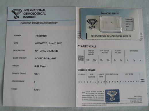Diamant im Brillantschliff 0.07 ct / VS1 / I / Fair / mit IGI Report