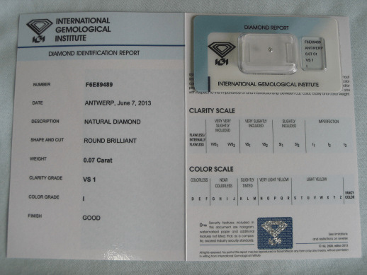 Diamant im Brillantschliff 0.07 ct / VS1 / I / Good / mit IGI Report
