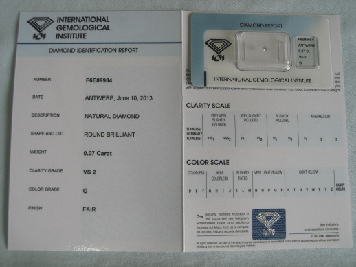 Diamant im Brillantschliff 0.07 ct / VS2 / G / Fair / mit IGI Report