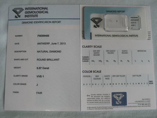 Diamant im Brillantschliff 0.07 ct / VVS1 / J / Fair / mit IGI Report