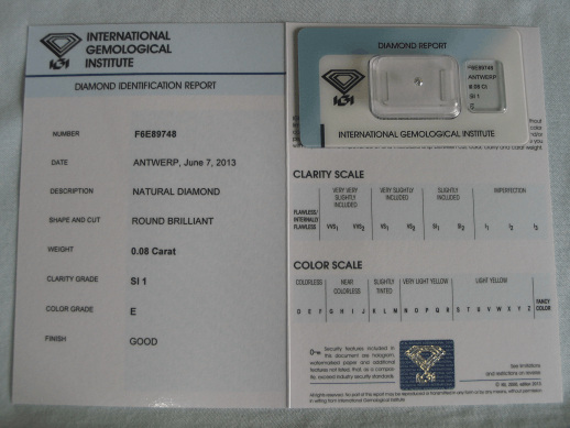 Diamant im Brillantschliff 0.08 ct / SI1 / E / Good / mit IGI Report