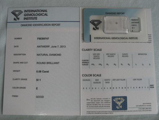 Diamant im Brillantschliff 0.08 ct / SI1 / E / Good / mit IGI Report