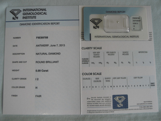 Diamant im Brillantschliff 0.09 ct / I2 / H / Fair / mit IGI Report