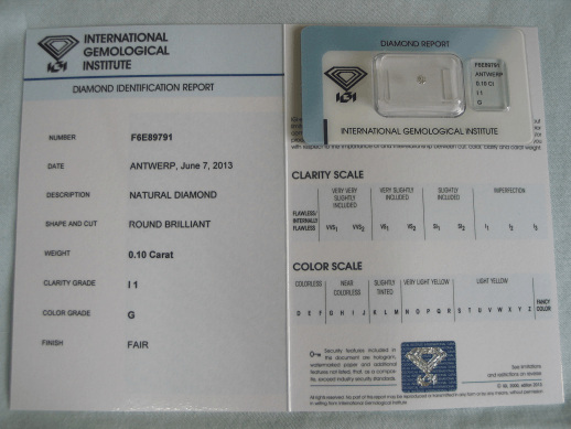 Diamant im Brillantschliff 0.10 ct / I1 / G / Fair / mit IGI Report