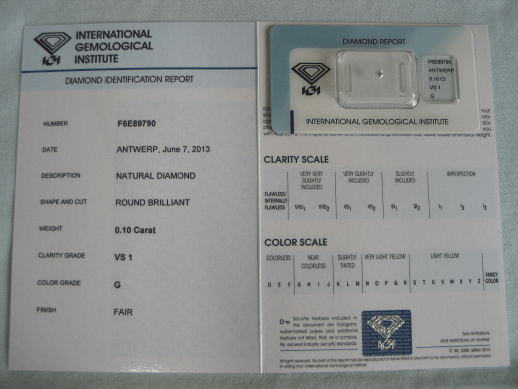 Diamant im Brillantschliff 0.10 ct / VS1 / G / Fair / mit IGI Report