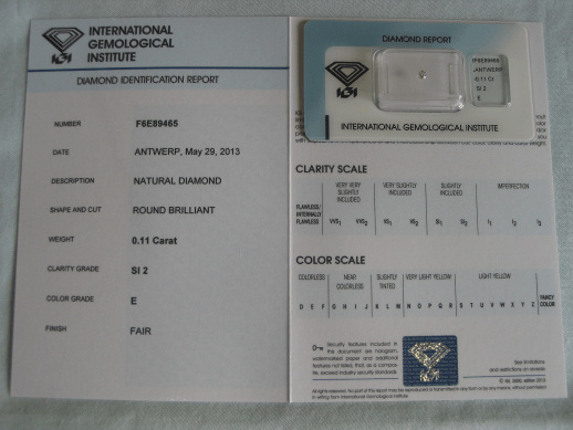 Diamant im Brillantschliff 0.11 ct / SI2 / E / Fair / mit IGI Report