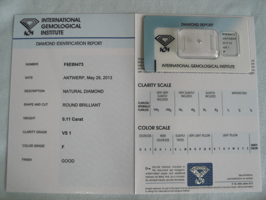 Diamant im Brillantschliff 0.11 ct / VS1 / F / Good/ mit IGI Report