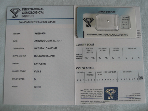 Diamant im Brillantschliff 0.11 ct / VVS2 / D / Good / mit IGI Report