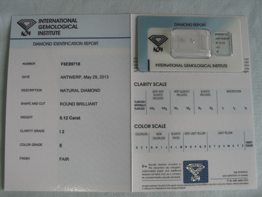 Diamant im Brillantschliff 0.12 ct / I2 / E / Fair / mit IGI Report
