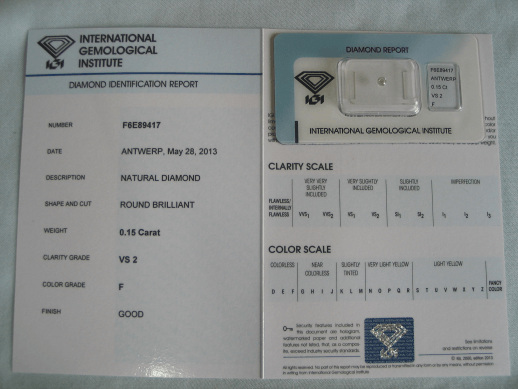 Diamant im Brillantschliff 0.15 ct / VS2 / F / Good / mit IGI Report