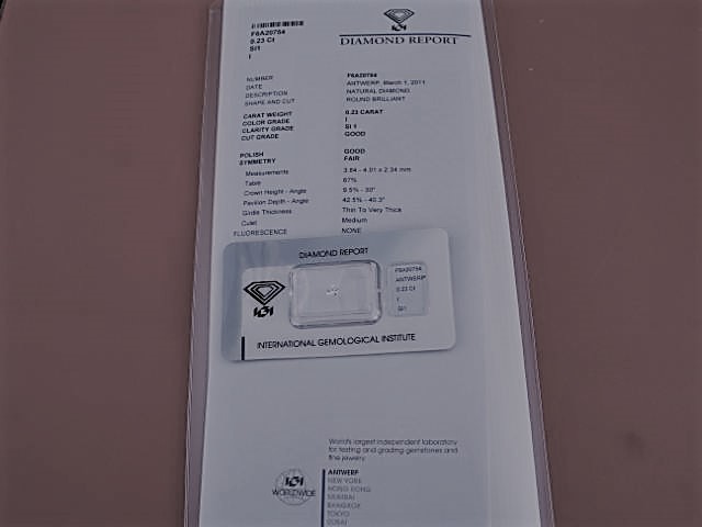 Sie erhalten diesen Diamanten mit einem original Report von IGI Antwerpen.
