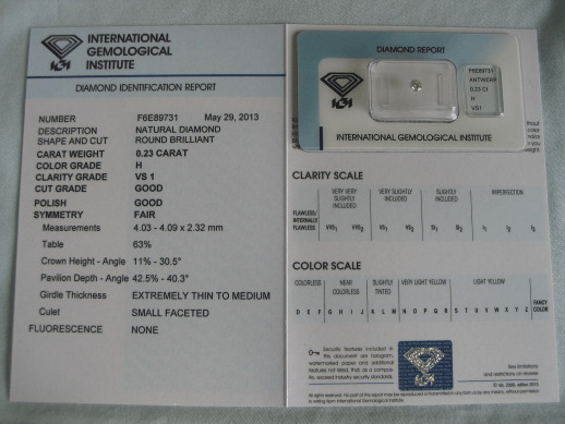 Sie erhalten diesen Diamanten mit einem original Report von IGI Antwerpen.