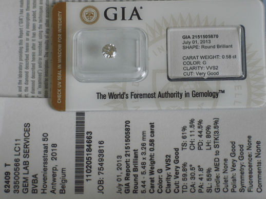Sie erhalten diesen Diamanten mit einem original Report von GIA (USA).