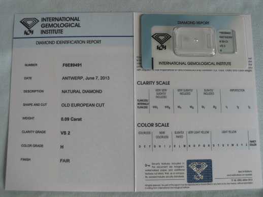 Diamant im Old European Cut 0.09 ct / VS2 / H / Fair / mit IGI Report