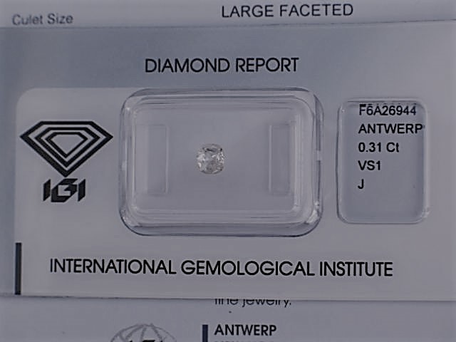 Sie erhalten diesen Diamanten mit einem original Report von IGI Antwerpen. Jeder Diamant ist in einer Safety-Box verpackt und trägt eine eigene Reportnummer. So können Sie ganz sicher sein, genau den Stein zu erhalten der im beigefügten Report beschrieben wurde.